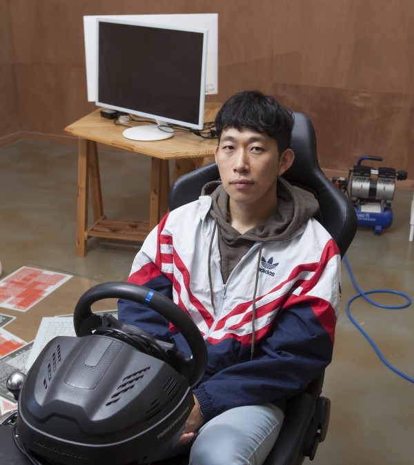 | ▲너의 선택이 그렇다면_컴퓨터, 모션기어 시뮬레이터, 핸들휠, 3구동 페달, 스피커, TV, TV독립스탠드_2021(사진=작가 제공) |