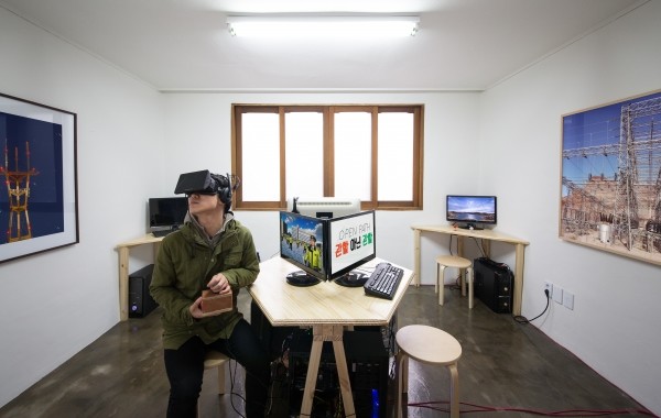 | ▲VR기기를 다루고 있는 안성석 작가(사진=작가 제공) |