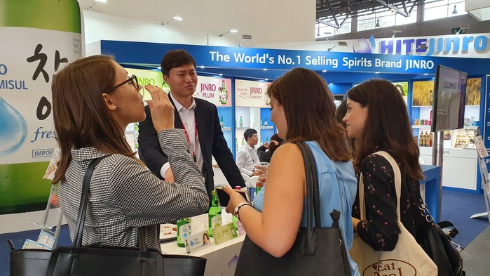 하이트진로는 지난 5일부터 9일까지 독일 쾰른에서 열린 세계 최대 규모의 식음료 산업박람회인 ‘아누가(Anuga) 2019’에 참석해 홍보 부스 운영, 참이슬과 함께 청포도에이슬 등 과일리큐르 시음행사를 진행했다. 전세계 식음료 기업들이 참가하는 이번 행사를 통해 미개척국가 거래선을 발굴하고, 기존 거래선 판매 활성화를 돕기 위해서다.