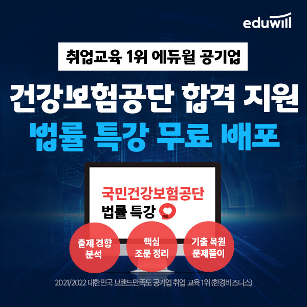 에듀윌이 국민건강보험공단 필기 시험에 대비해 ‘법률 특강’을 무료로 배포한다고 28일 밝혔다.