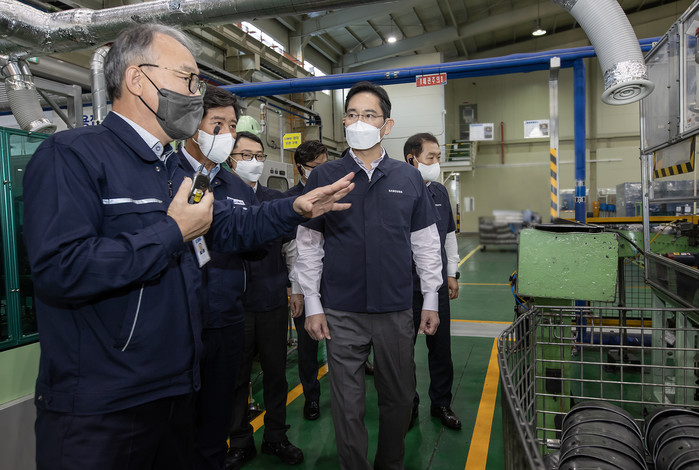 삼성전자는 이 회장이 28일 광주광역시에 있는 협력회사 '디케이'를 방문했다고 밝혔다.