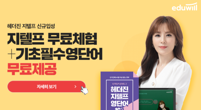 종합교육기업 에듀윌(대표 이중현)이 소방공무원 G-TELP(지텔프) 무료체험 강의와 기초필수 영단어를 무료로 제공하는 이벤트를 진행 중이다.