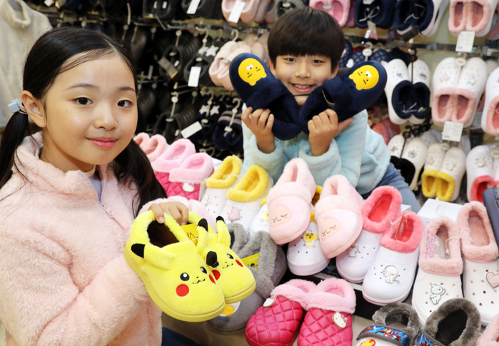 이마트는 겨울에 앞서 카카오프렌즈 아동 방한 실내화, 미키, 푸우, 헬로키티 등의 귀여운 캐릭터를 담은 ‘캐릭터 입체 방한 슬리퍼’을 포함한 방한 실내화들을 판매한다.