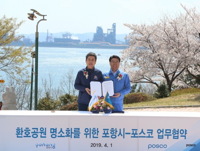 최정우 회장은 포스코 창립기념일인 4월 1일 환호공원에서 이강덕 포항시장과 함께 환호공원을 명소화하는 내용의 업무협약(MOU)을 체결했다고 알려왔다.